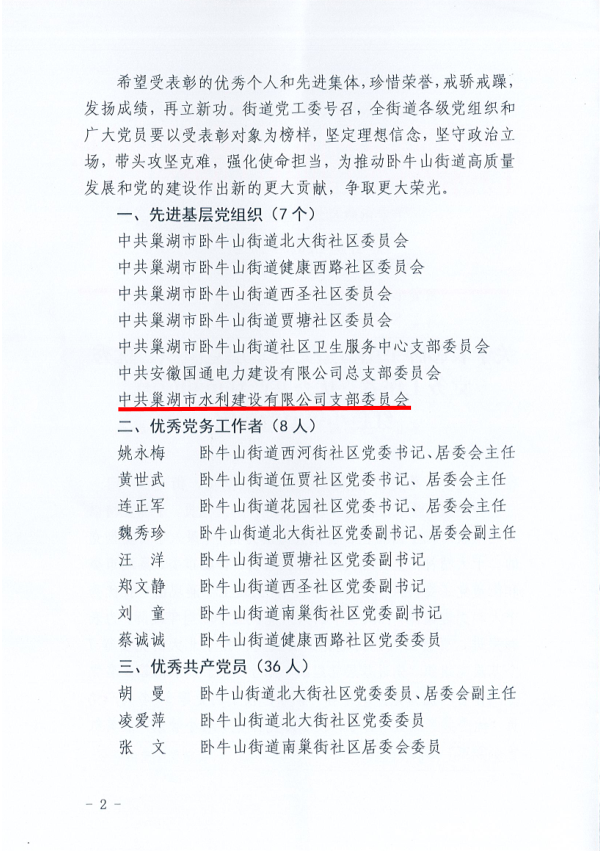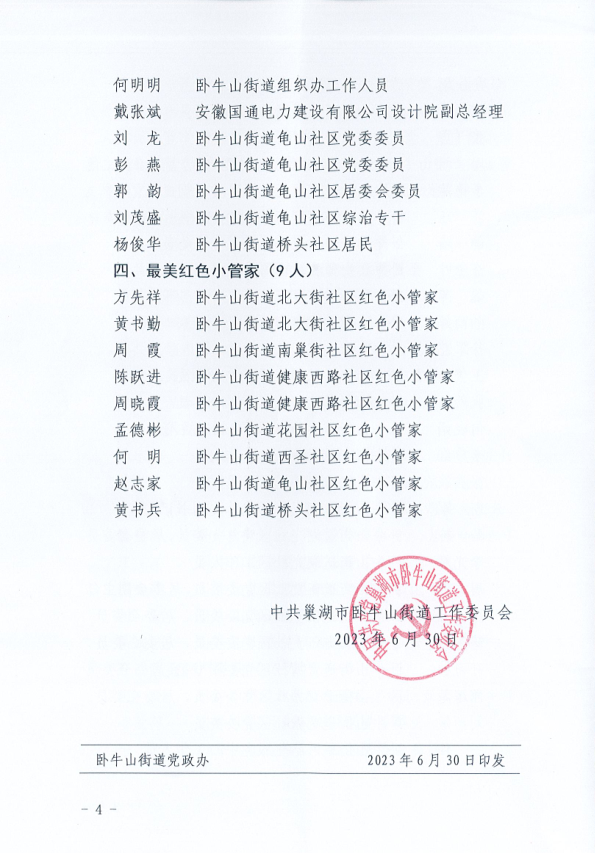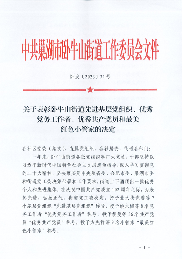 關于表彰臥牛山街道先進基層黨組織、優秀黨務工作者、優秀共產黨員和最美紅色小管家的決定