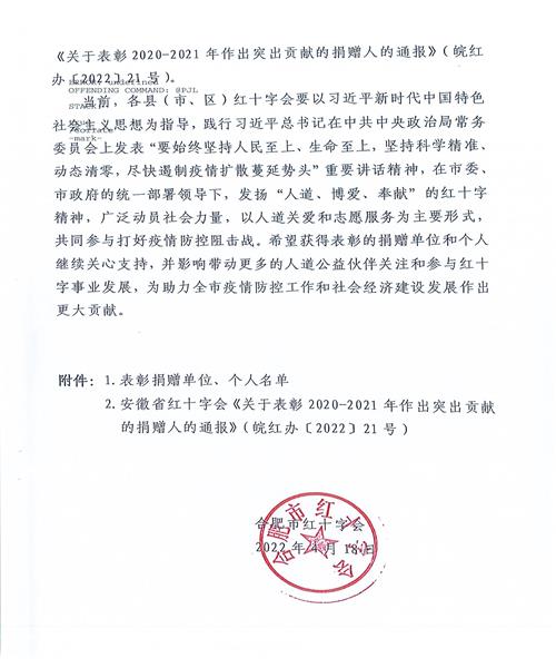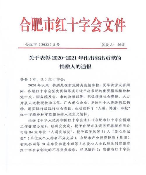 合肥市紅十字會關于表彰2020-2021年作出突出貢獻的捐贈人的通報